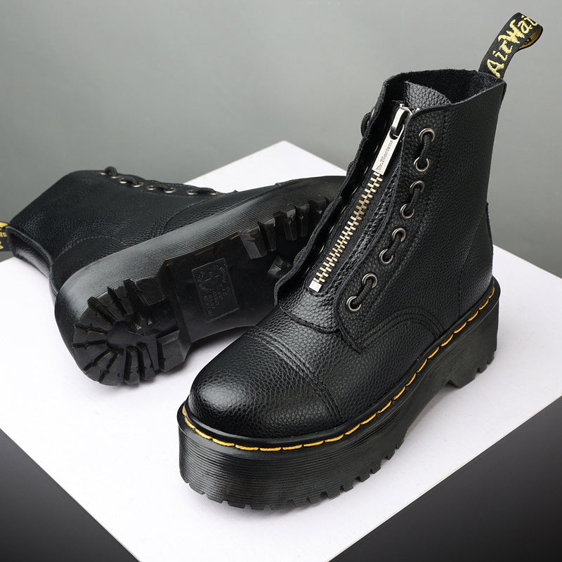 Šie modernūs Dr. Martin tipo batai, pagaminti iš aukščiausios kokybės odos, yra puikus pasirinkimas bet kokiai progai. Jų vidutinio aukščio platforma ir patogus užsegimas priekyje užtikrina komfortą visą dieną.