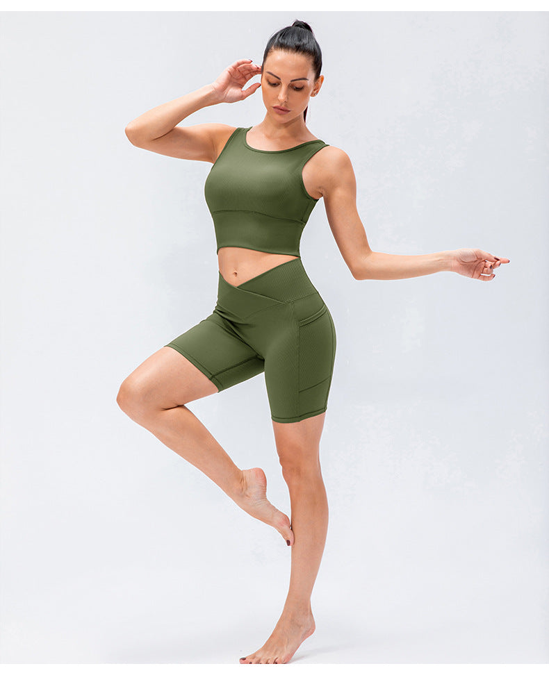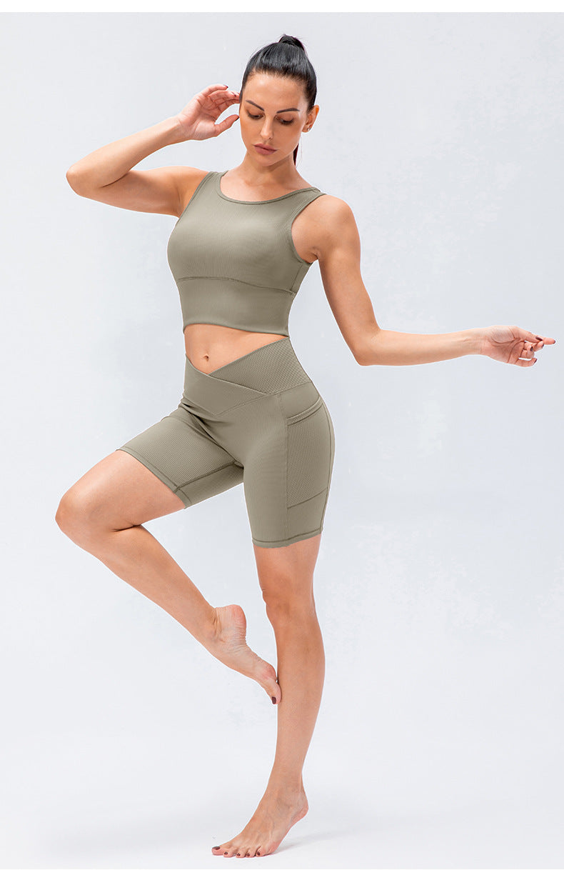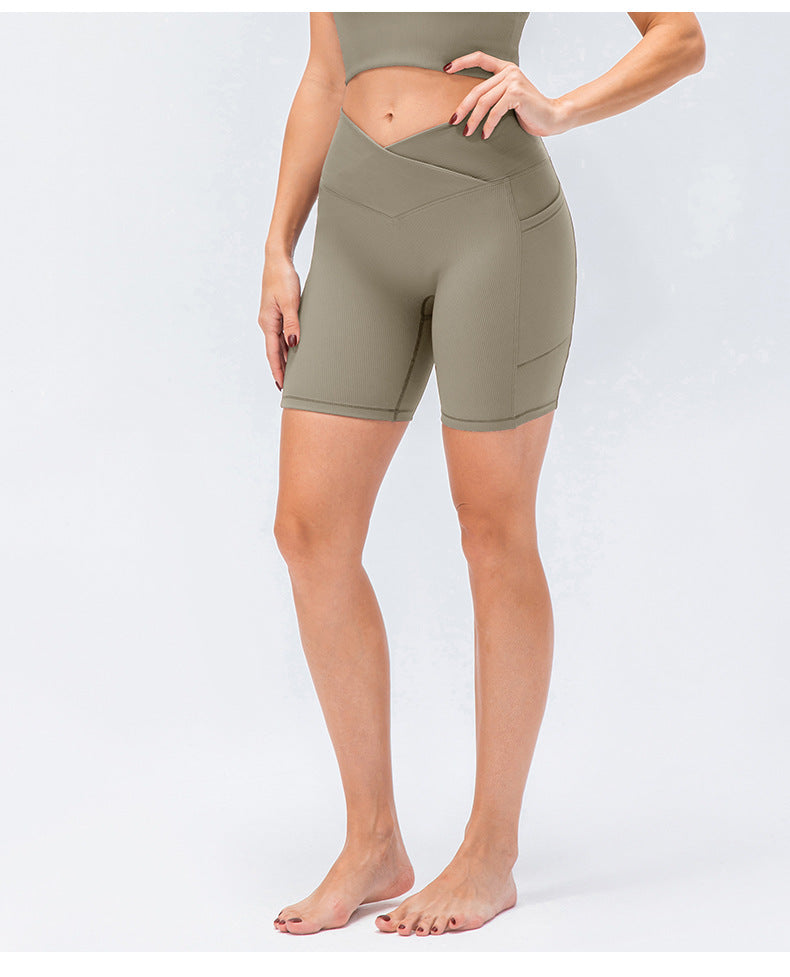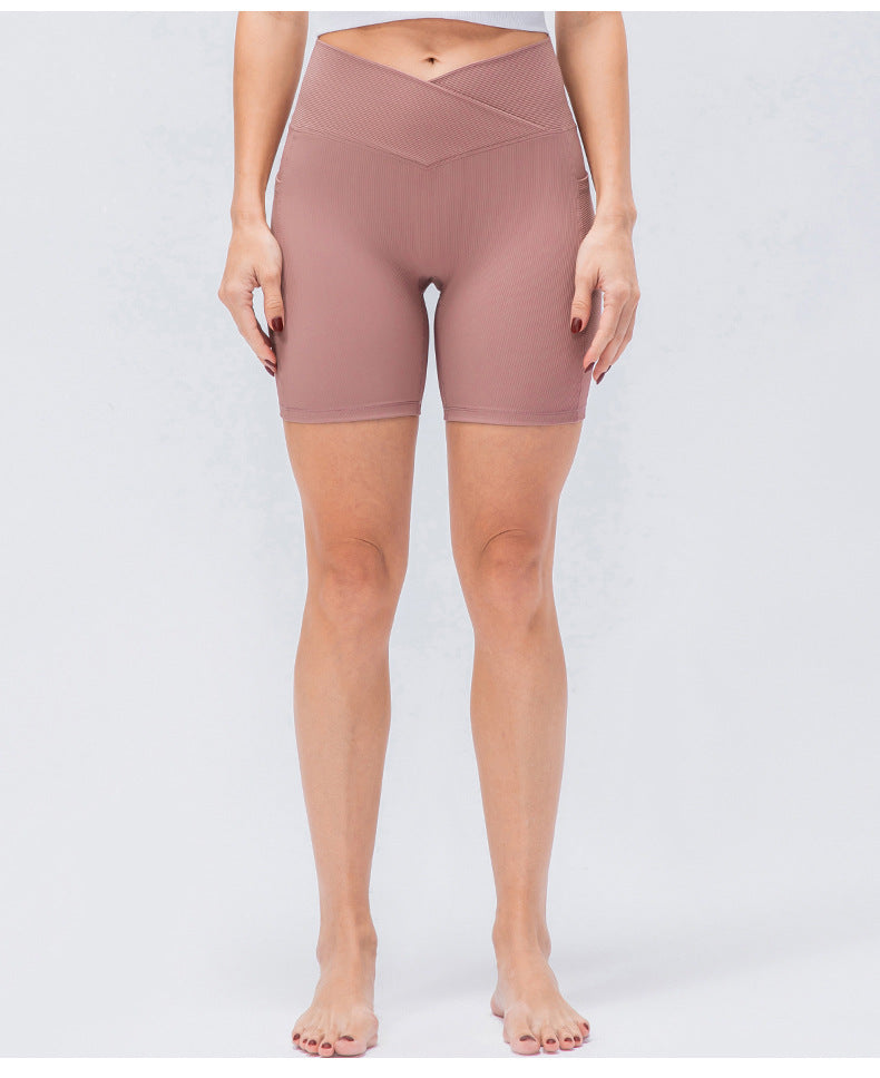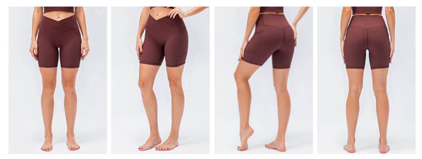 Šortų dizainas su aukšta talija ir kryžminiu priekiniu puikiai formuoja juosmens ir pilvo sritį, todėl Jūsų figūra atrodo dailesnė.