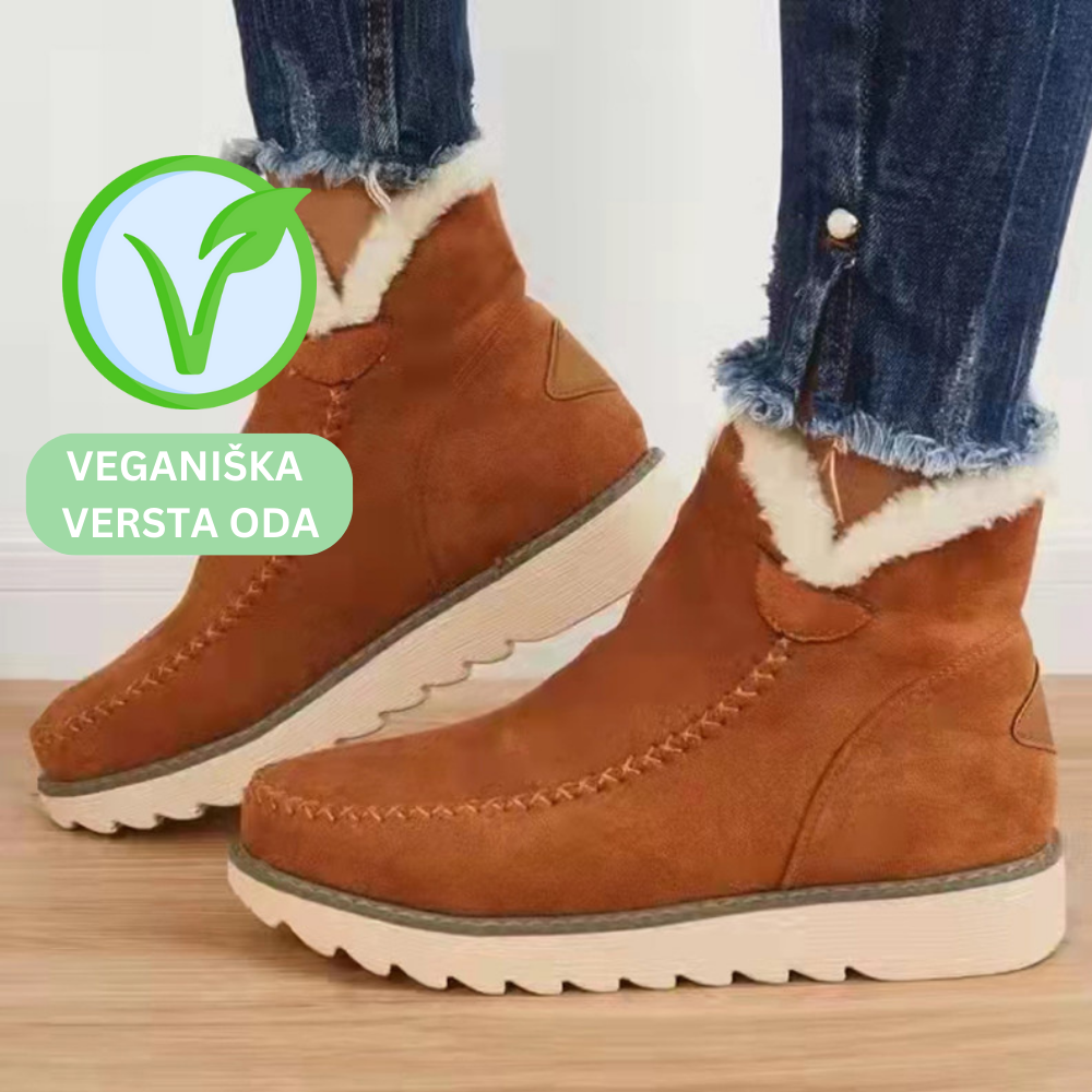 Medžiagos tipas: dirbtinio kailiuko pašiltinimas, guminis padas, veganiškos verstos odos išorė.