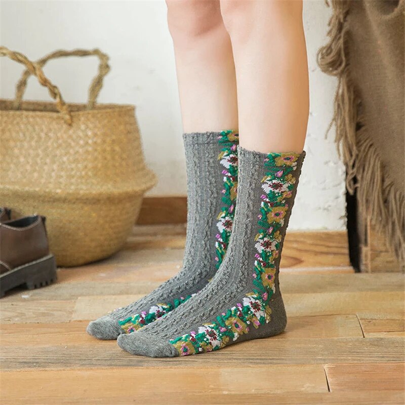 Moteriškos šiltos gėlėtos kojinės (3 vnt.)
