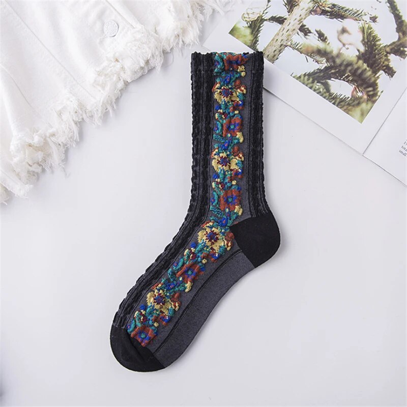 ✔️ Atrodysite stilingai. Kojinės kuopščiai papuoštos įvairiais gėlėtais motyvais, tad atrodysite unikaliai ir stilingai.