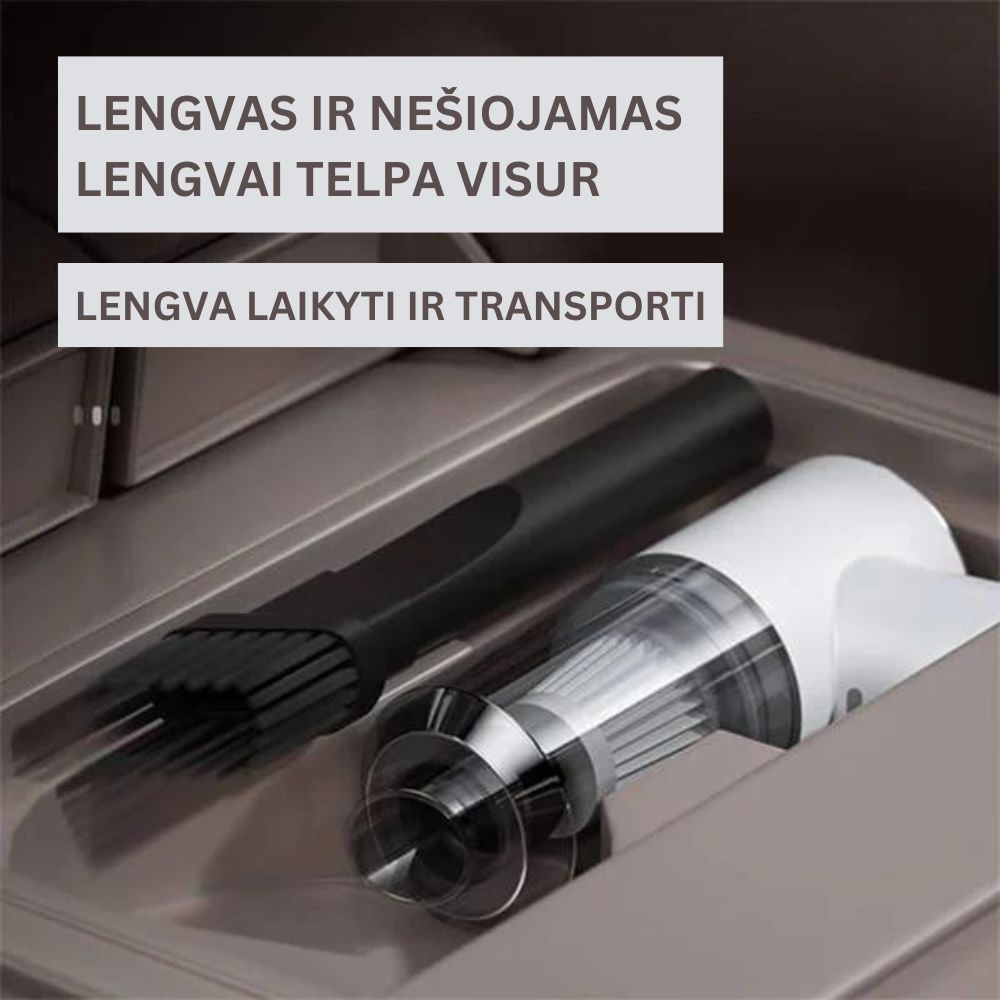 Kompaktiškas dizainas. lengvas. skirtas rankiniam naudojimui. tačiau turi itin galingą siurbimo funkciją. Galia siekia 120W. galingass variklis užtikrina stiprų siurbimą iki 6000pa. tinkama tiek šlapiam. tiek sausam siurbimui. itin lengvas. tik 400 g.