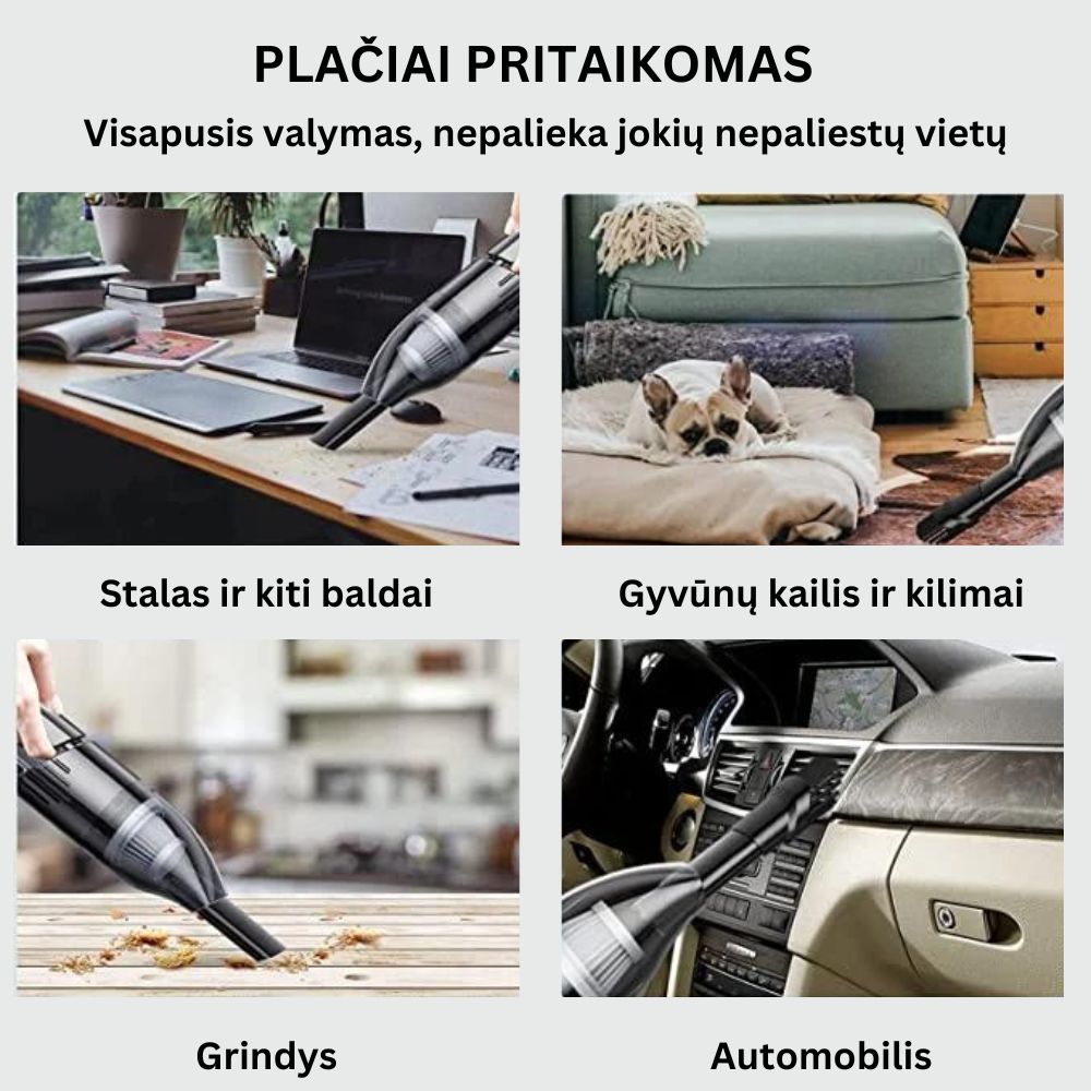 Siurblys gali būti naudojamas ne tik automobiliui. bet ir kaip kompiuterio klaviatūrą valantis oro siurblys. nešiojamojo kompiuterio valiklis. stalinis dulkių siurblys. rankinis siurblys pianinui. naminių gyvūnėlių nameliui. biuro stalo valymui ir kt. Dviejų tipų keičiamos galvutės visų rūšių šiukšlėms ir giliam valymui.