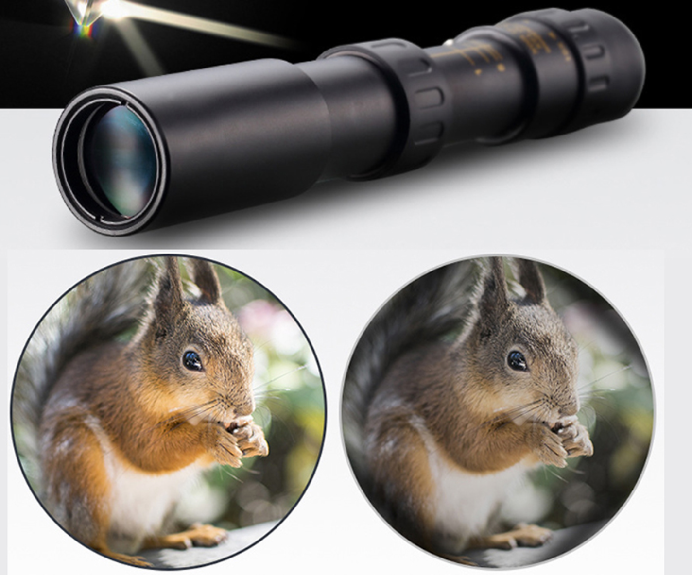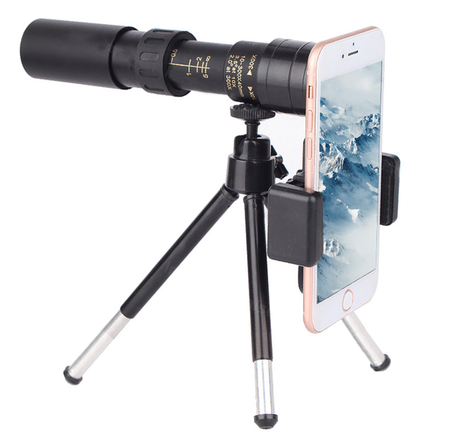 Kartu su 10-300x40 mm teleskopo monokliu į pakuotę įeina trikojis, nuo dulkių apsaugantis maišelis, šluostė ir virvelė nešiojimuisi.