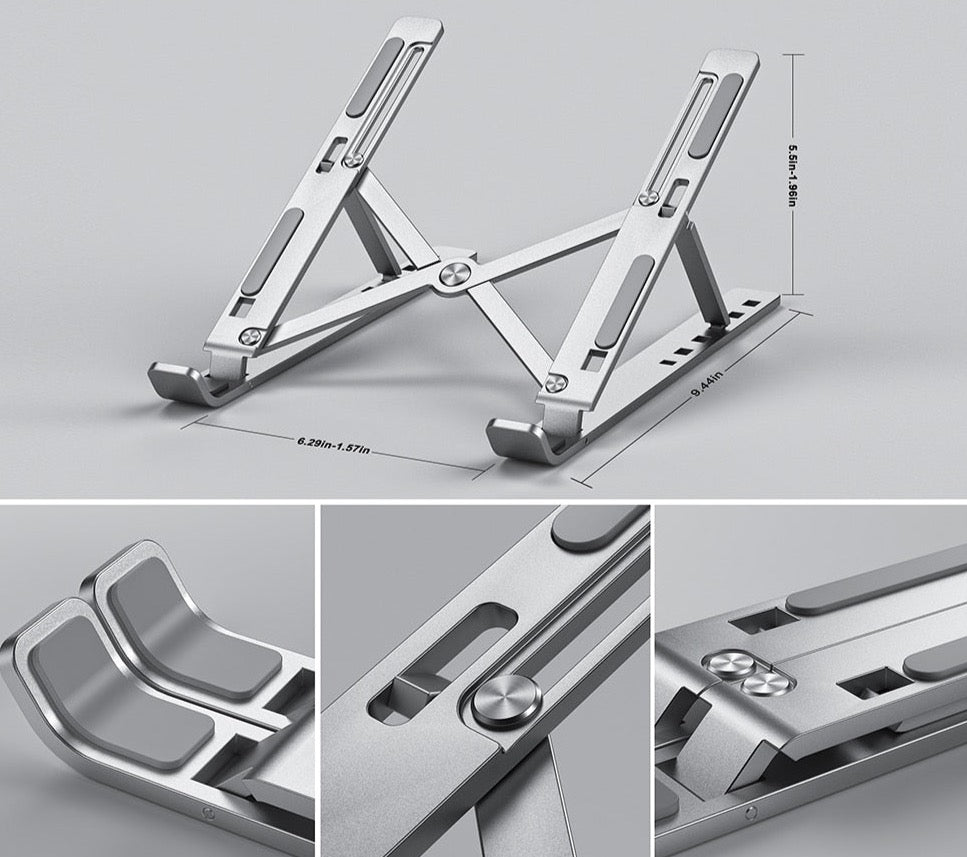 Dėl aukštos kokybės aliuminio lydinio ir slydimui atsparių pagalvėlių, stovas užtikrina stabilumą ir apsaugo tiek nešiojamąjį kompiuterį, tiek darbo paviršių.