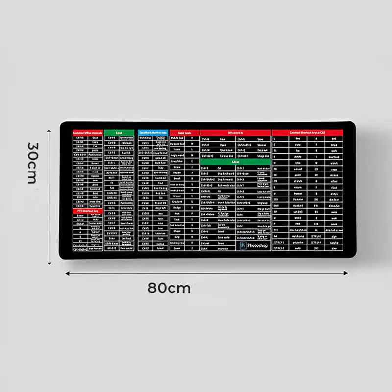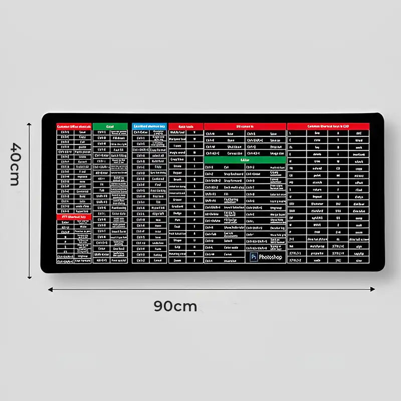 - Neslystantis stalo kilimėlis suteikia stabilumo ir tvirto sukibimo su kompiuterio esančia klaviatūrą ir pelyte. Ant kilimėlio yra surašytos visos kompiuterio klaviatūros funkcijos, kurias galėsite panaudoti dirbdami su kompiuteriu. Itin didelis 900 mm x 400 mm dydžio kilimėlis leis patogiai įsikurti savo darbo vietą bei užtikrins spartesnį darbą!