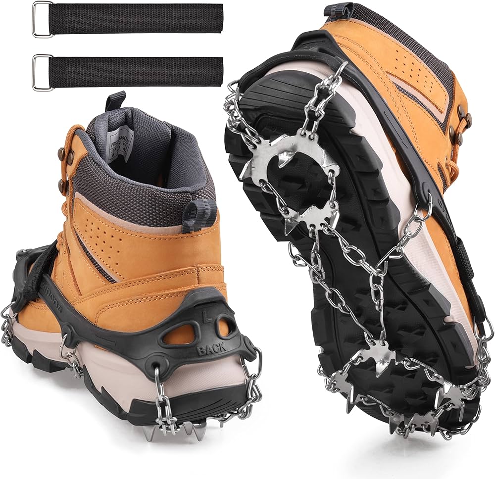 ✅ Neslystantis dizainas – su 8 ir 10 dantų konstrukcija, užtikrinančia tvirtą sukibimą su ledu ir sniegu.