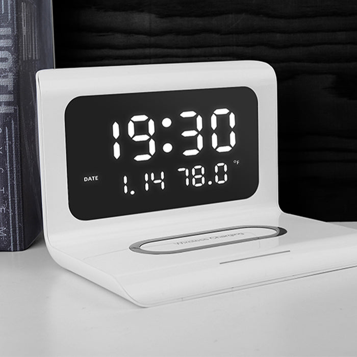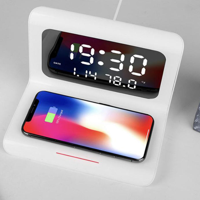 Šis novatoriškas įrenginys ne tik suteiks jums belaidį telefono įkrovimą. bet ir tarnaus kaip žadintuvas. kalendorius ir termometras - viskas viename!