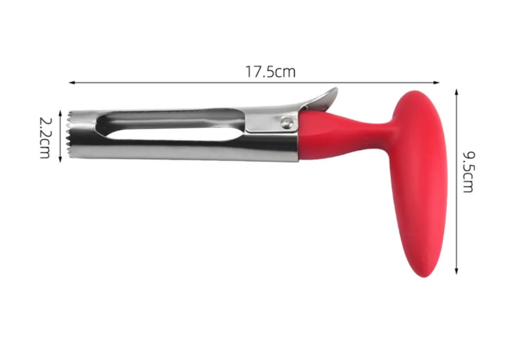 Mūsų obuolių sėklų išėmėjas pasižymi patogiu dizainu ir dvigubomis aštriomis dantytomis ašmenimis, kurios leidžia pašalinti branduolį vienu paprastu judesiu. Ergonomiška rankena užtikrina patogų ir stabilų laikymą, todėl vaisių ruošimas taps greitas ir efektyvus.
