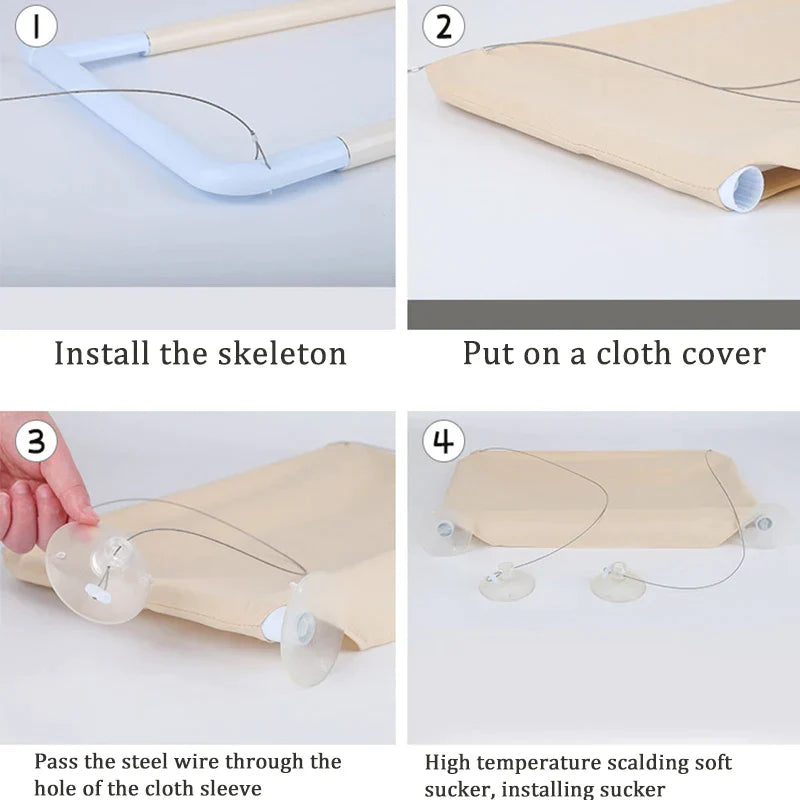 - Hamakas yra tvirtinamas dviem vakuuminiais siurbtukais. Jį galite prikabinti prie lango ir leisti katei mėgautis lauko vaizdu. Katė jausis saugi ir rami!