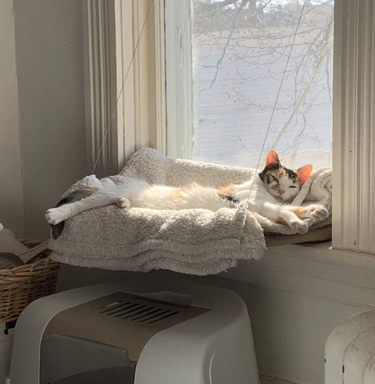 - Išskirtinis, ore kabantis hamakas užtikrina tobulą kačių poilsį! Hamake esantis audinys turi medvilninį paminkštinimą, kuris užtikrina pralaidumą orui. Suteikite katėms kokybišką poilsį ir saldų pietų miegą prieš saulę!