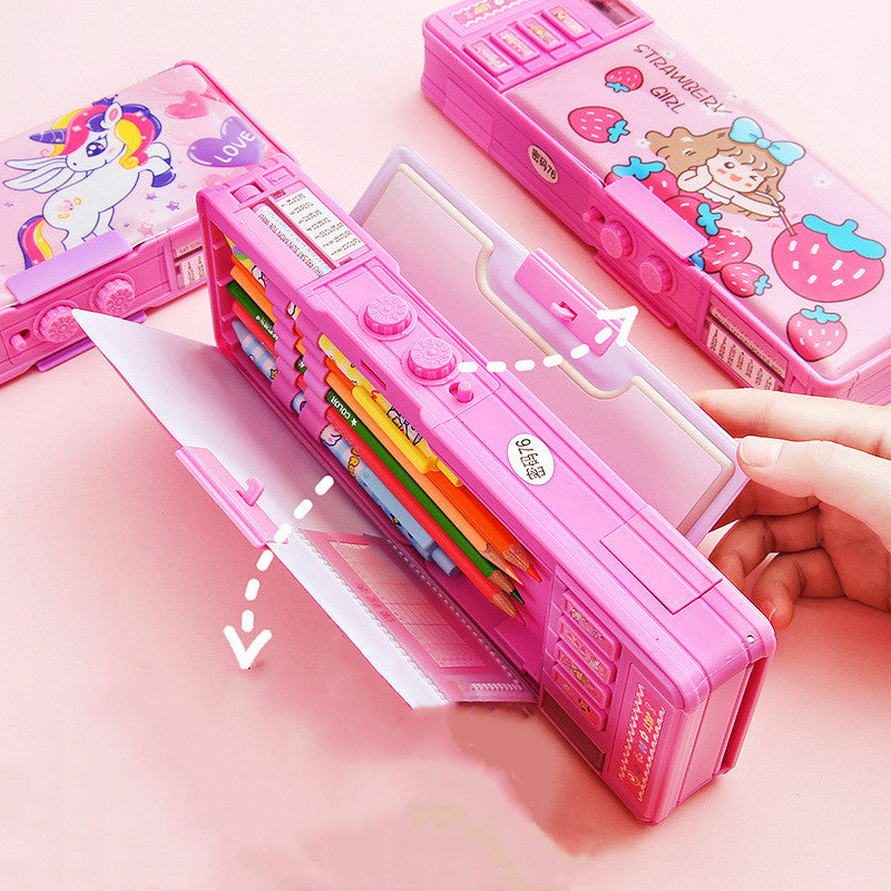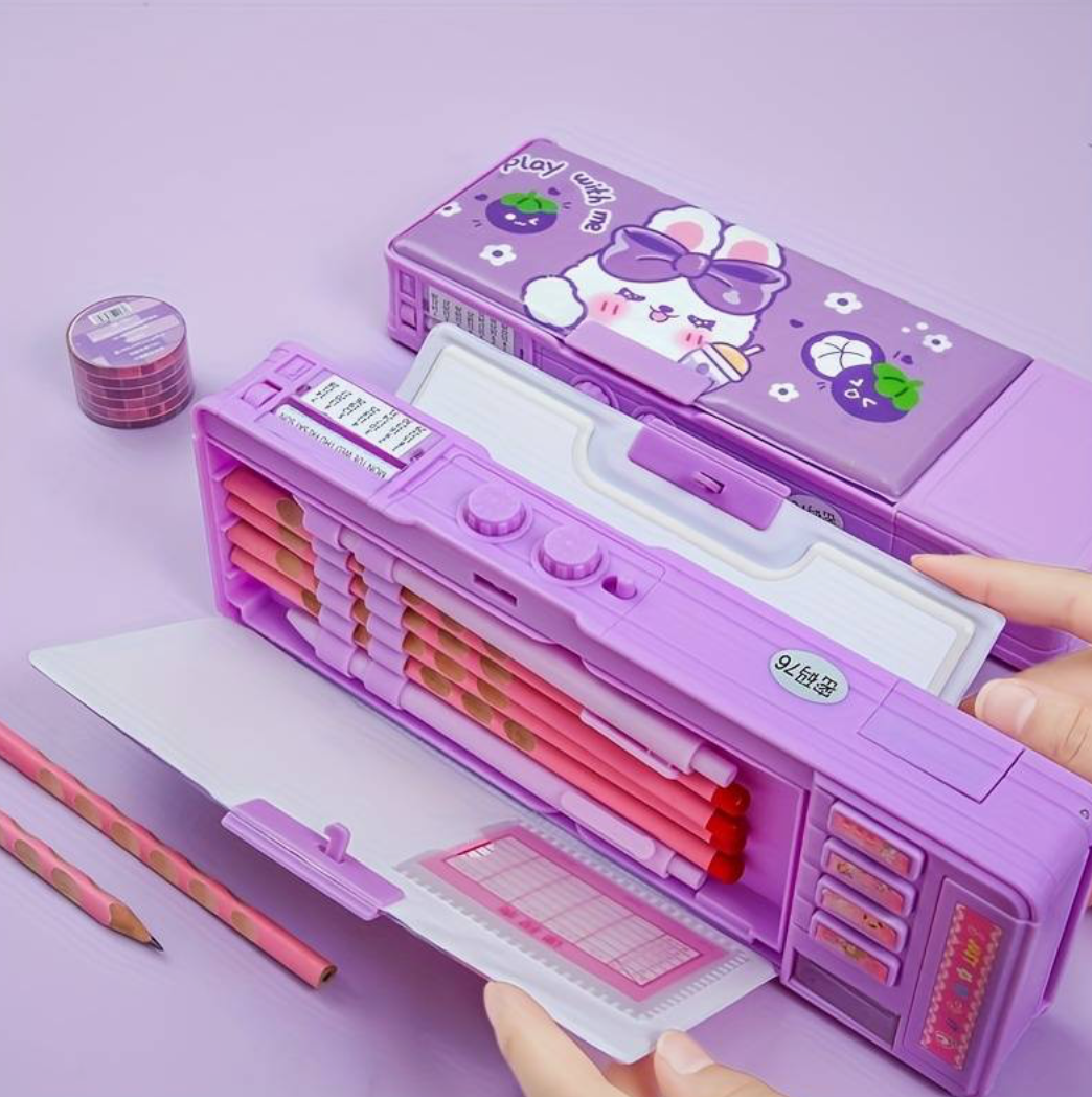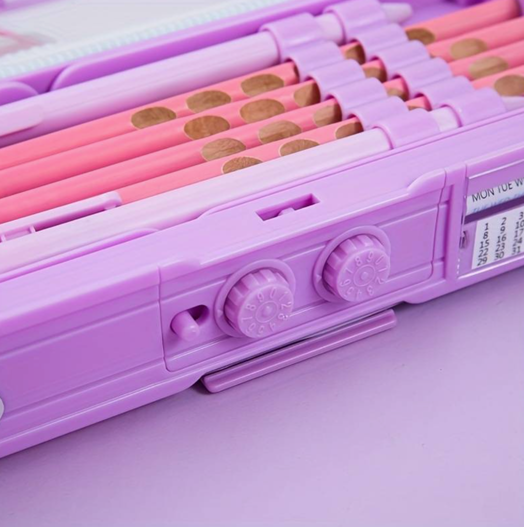 Mechaninis mygtukas kartu su slaptažodžio užraktu užtikrina, kad tik Jūsų vaikas galės atidaryti dėžutę, todėl rašikliai ir kiti reikmenys bus saugūs.