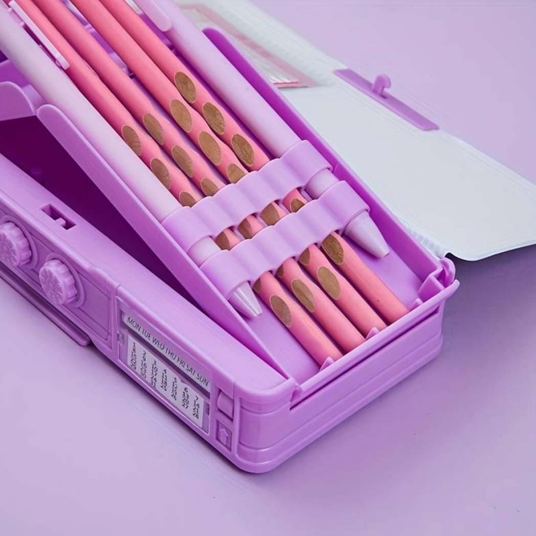 Dėka dviaukščio dizaino, ši dėžutė talpina daug rašiklių ir užtikrina, kad jie visi būtų tvarkingai sudėti ir lengvai pasiekiami.