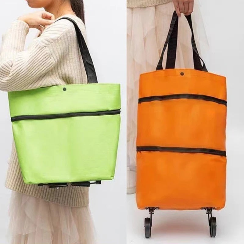 Šis daugiafunkcinis pirkinių krepšys yra ne tik stilingas, bet ir itin praktiškas. Jis lengvai transformuojamas iš kompaktiško nešiojamo krepšio į erdvų pirkinių vežimėlį, turintį paslėptus ratus ir metalinį laikiklį stabilumui užtikrinti. Tai puikus pasirinkimas kasdieniems apsipirkimams ir kelionėms.