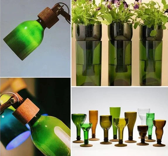 Butelių pjaustyklės universali konstrukcija leidžia pjaustyti įvairių formų ir dydžių stiklines butelius, todėl atsiranda daugiau galimybių iš jų sukurti nuostabius daiktus.