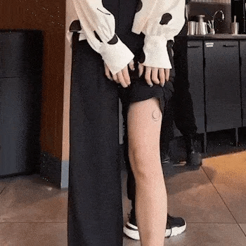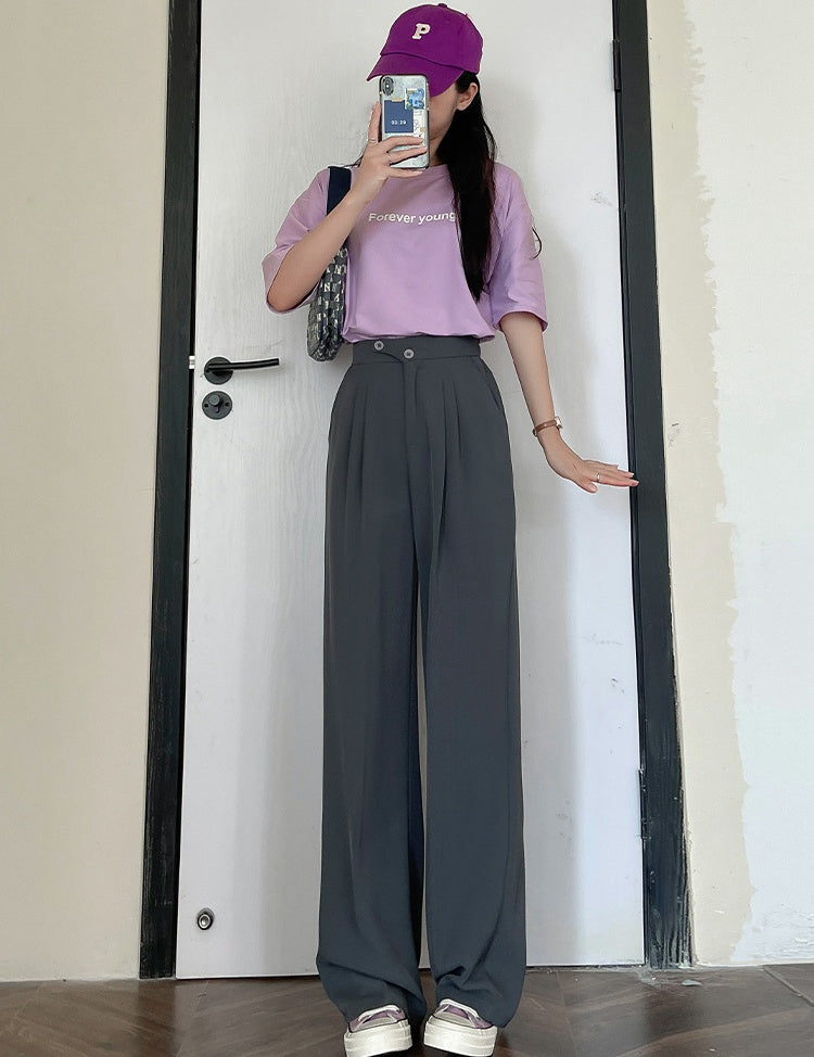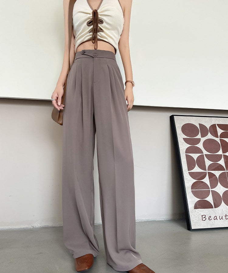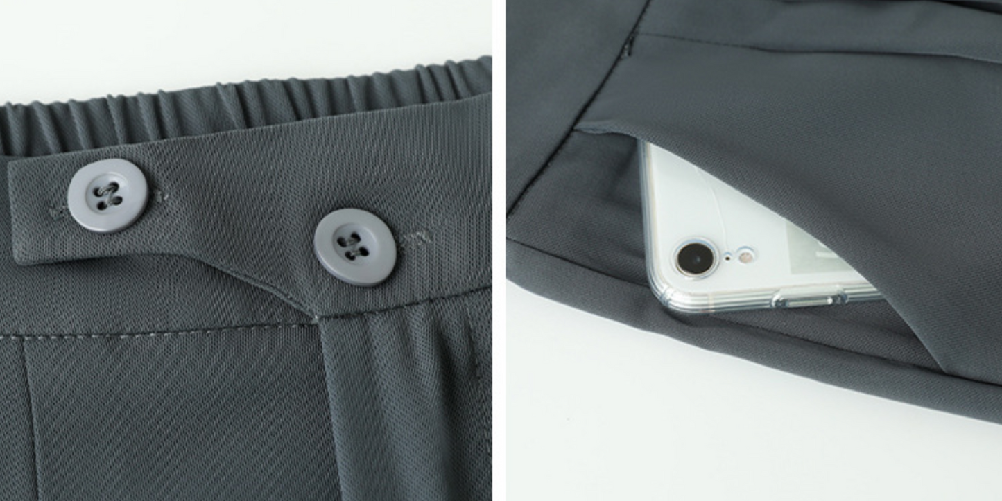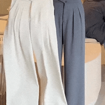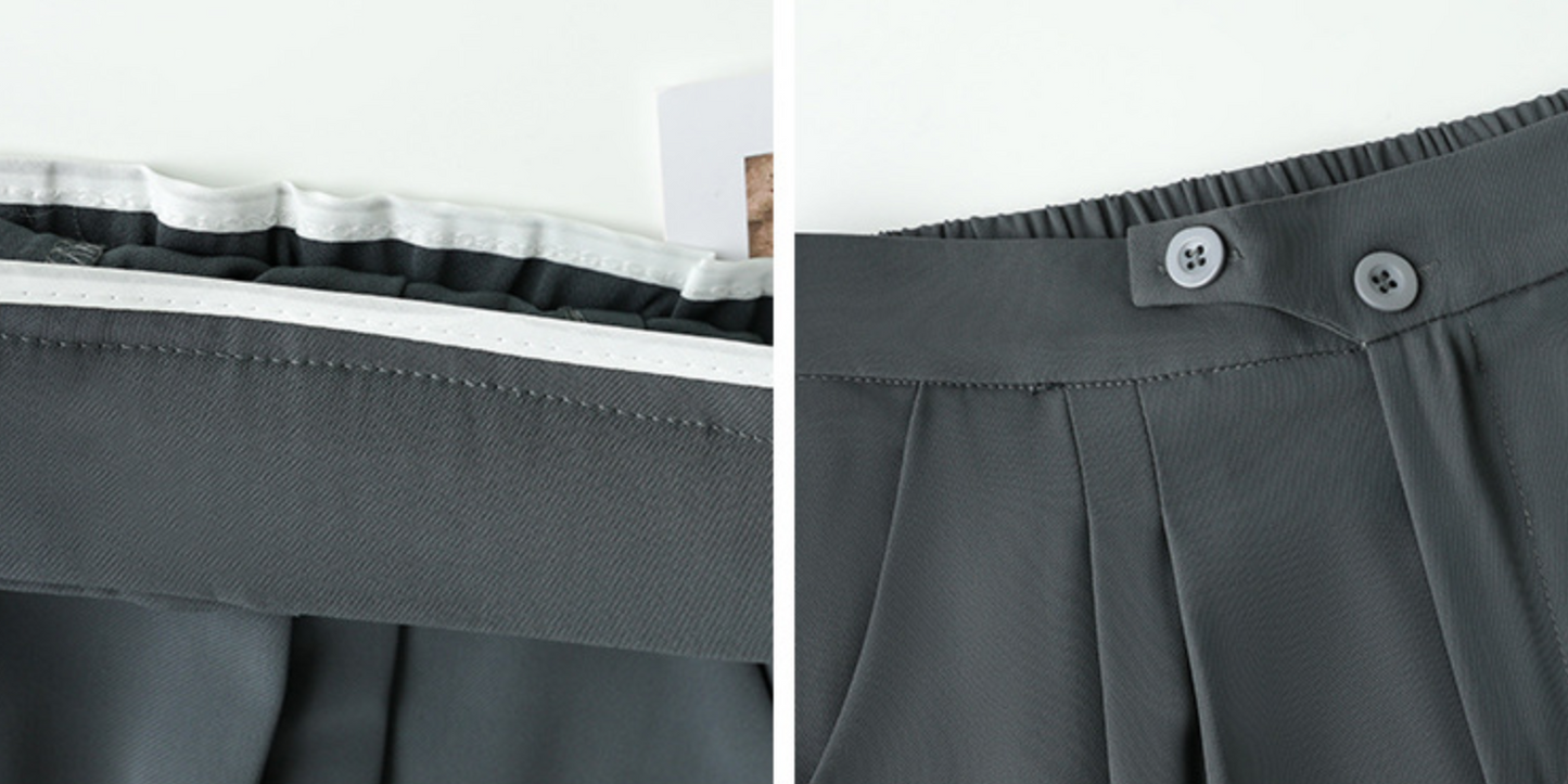 Plisuotas pasiuvimas kartu su plačiu kelnių dizainu efektyviai paslepia kojų riebalus ir vizualiai pailgina kojas, todėl jos atrodo lieknesnės.