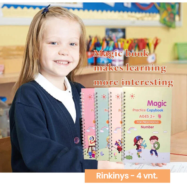 📚 4 knygų rinkinys: Komplektą sudaro keturios stebuklingos rašymo ir piešimo pratybų knygutės. padedančios vaikams lavinti rašymo įgūdžius.