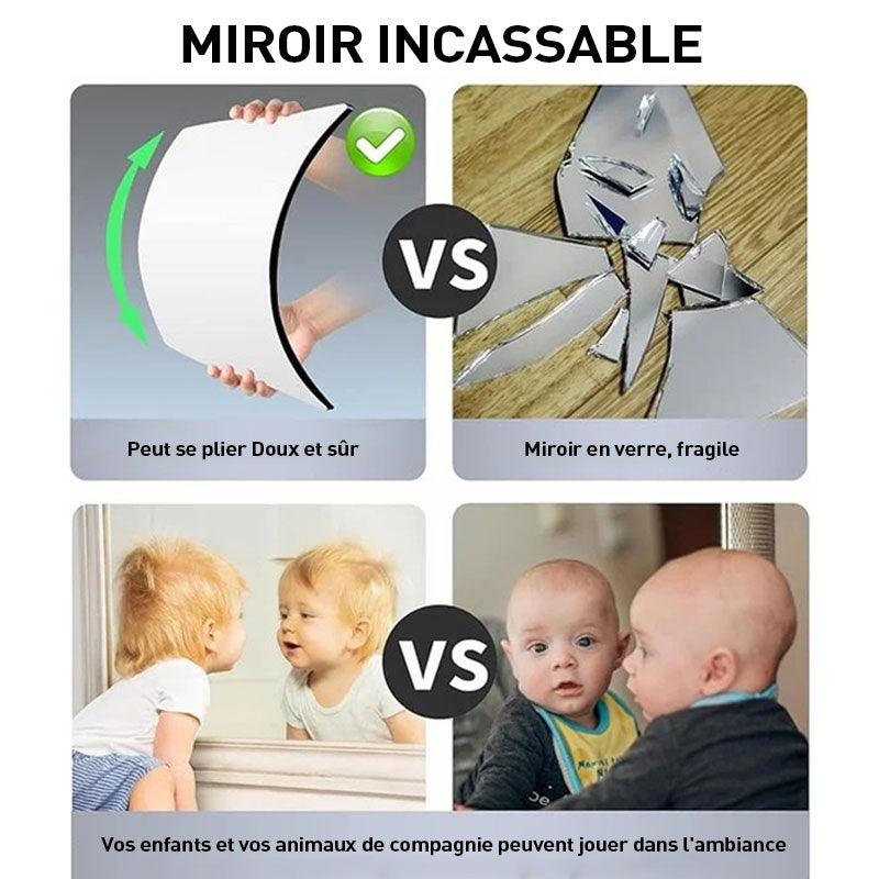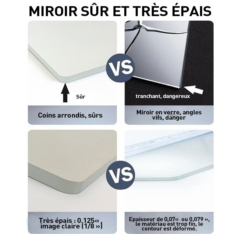 - Veidrodį galima priklijuoti prie durų, sienos ar spintos. Tai puikus būdas mažiems kambariams, kuriuose nėra vietos pastatomiesiems veidrodžiams. Šis veidrodis pagamintas iš aukštos kokybės itin skaidrių medžiagų, kurios leidžia matyti ryškų veidrodyje atspindinį atvaizdą.