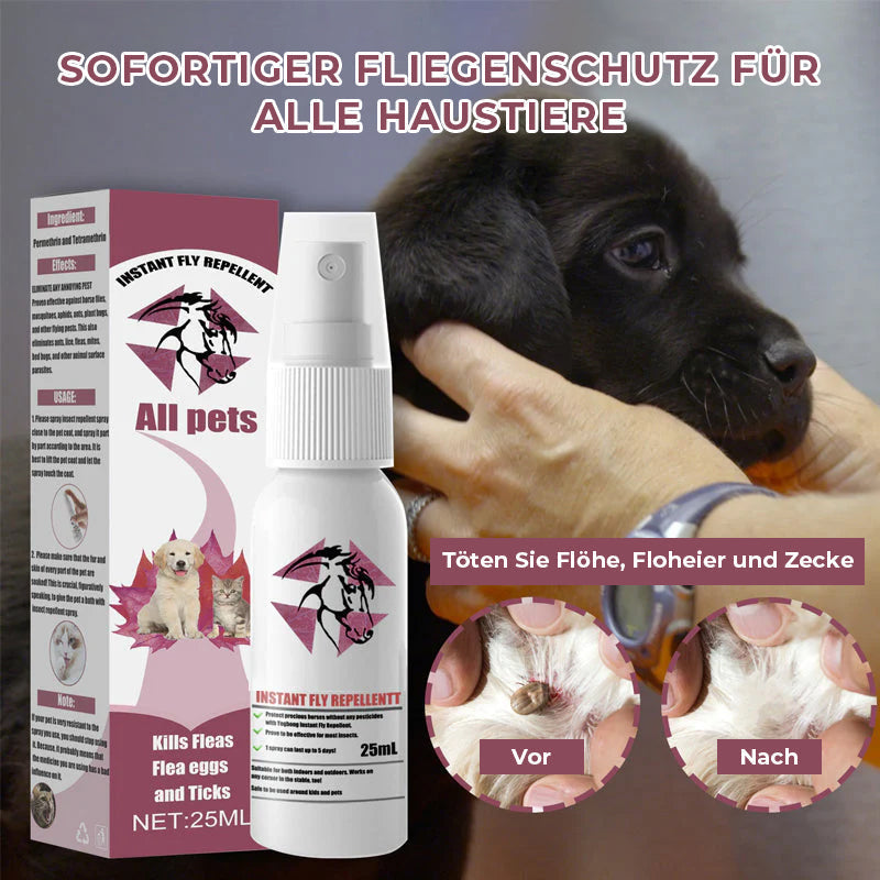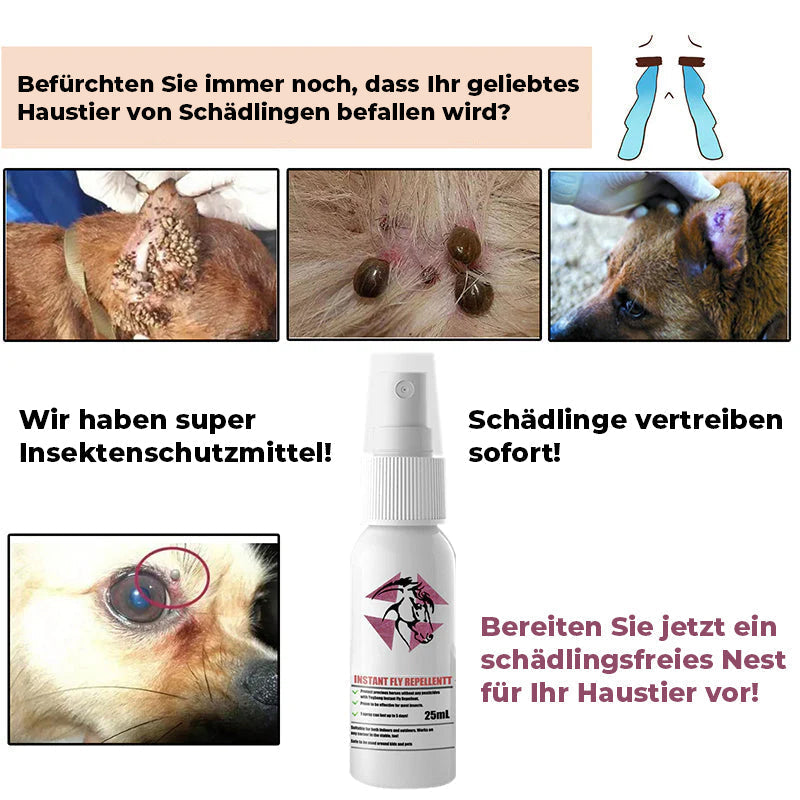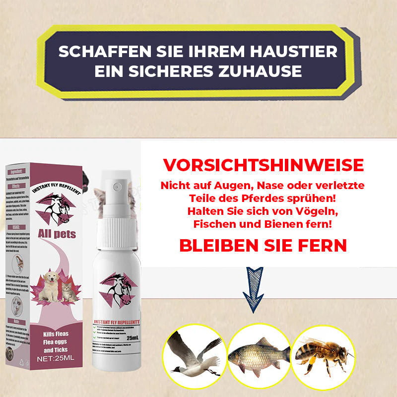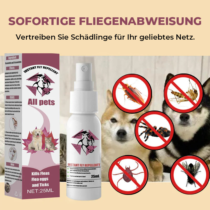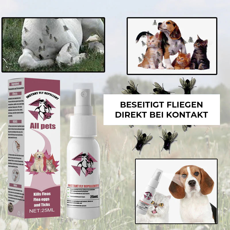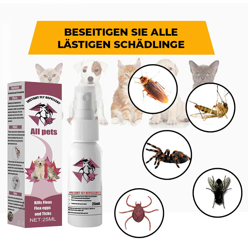 - Puikiai tinka tiek augantiems namuose, tiek lauke ar tvarte gyvenantiems gyvūnams. Priemonė efektyviai kovoja su skruzdėmis, įvairiais vabzdžiais, uodais, muselėmis, blakėmis. Purškalo sudėtis yra saugi aplinkai, kurioje yra žmonių.