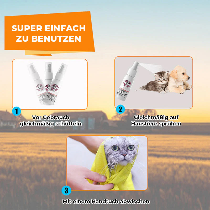 - Purškalas veiksmingai atbaido įvairius parazitus! Priemonė yra be alkoholio bei kitų kenksmingų priedų. Papildytas natūraliais insekticidais. Yra visiškai saugus visiems gyvūnams. Purškalo užtenka ilgą laiką, nes jis yra skiedžiamas vandeniu.