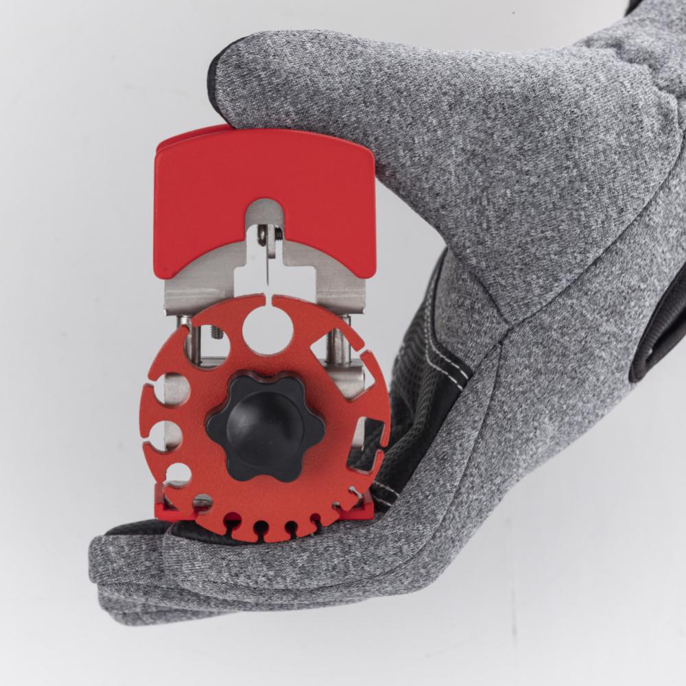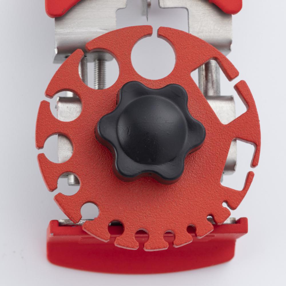 14 dydžių/formų angų, skirtų skirtingų dydžių/stilių laidams nuo 24 AWG (3/64") iki 0 AWG (7/16"), vientisiems ir suvytiems.