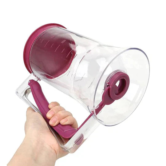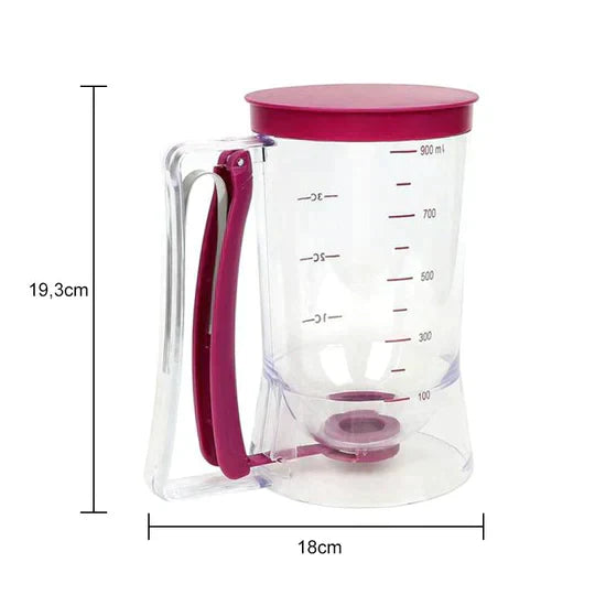 - CakeMaker™ tešlos piltuvas talpina iki 900 ml, todėl galėsite gaminti didelį kiekį tešlos vienu metu. Tai ypač naudinga, jei kepate daug skanėstų vienu kartu ar ruošiate tešlą didelėms šventėms ar šeimos susibūrimams.