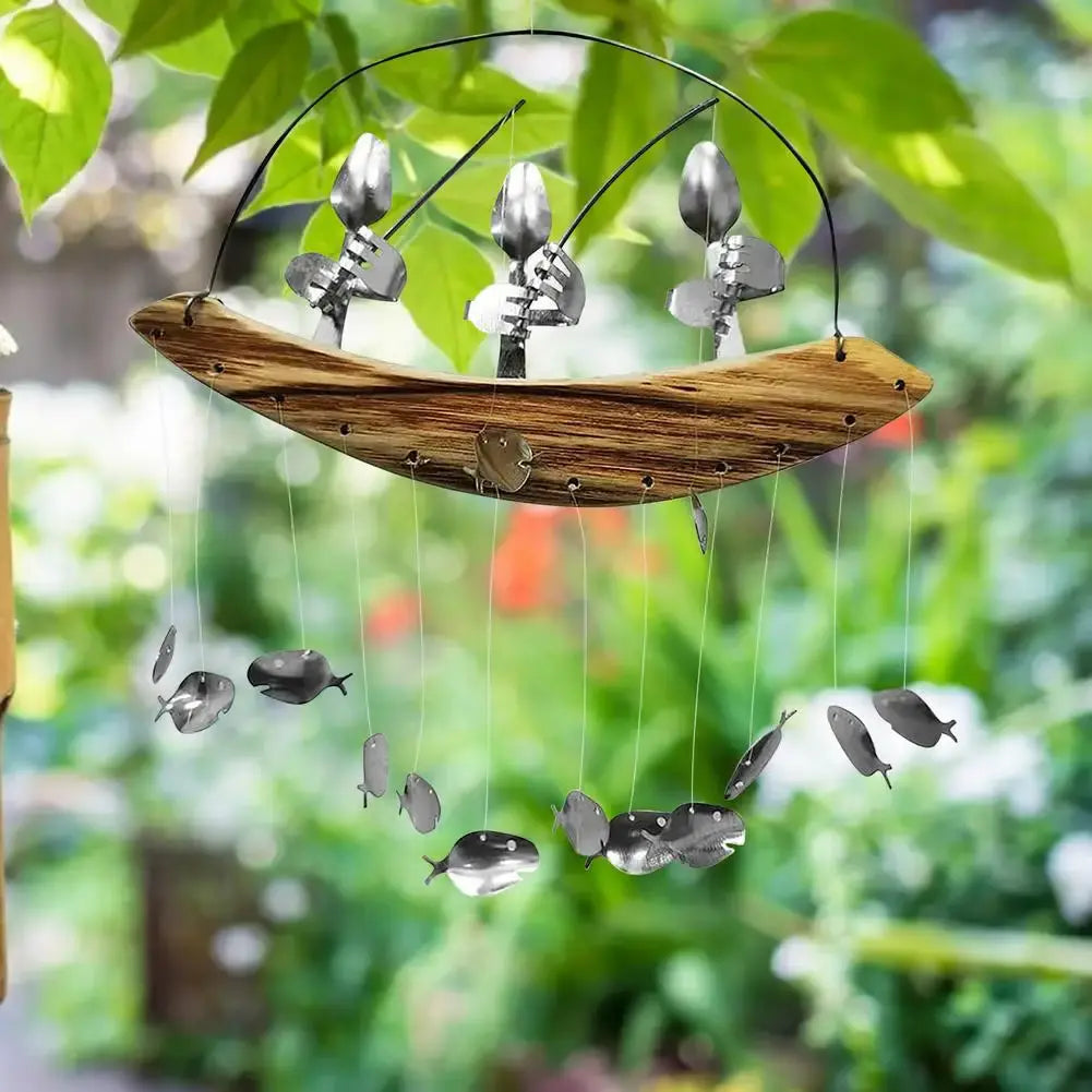 - Vėjo varpelius galima laikyti ne tik lauke, bet vidaus patalpose. Tai gali būti puiki interjero detalė sodo namelyje, terasoje, kieme, namų balkone! Kiekvienas metalinis šaukštelis sukuria skirtingą skambėjimo melodiją. Vėjo varpeliai simbolizuoja laimę, sveikatą ir ramybę.