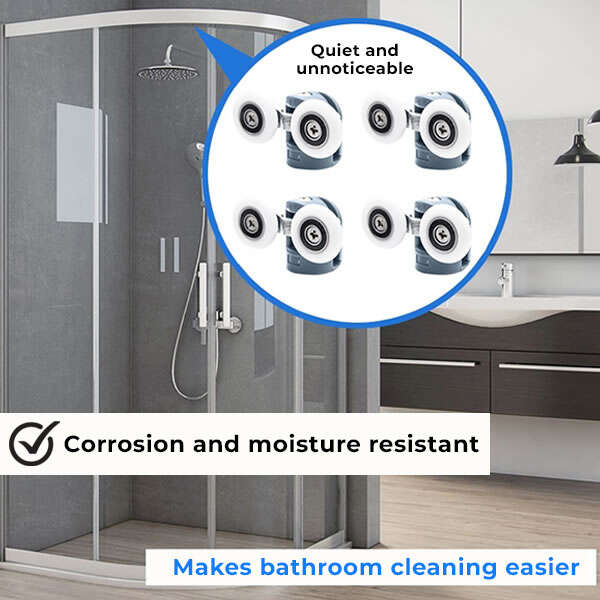 - Erzina garsiai atsidarančios ir užsidarančios durelės dušo kabinoje? Šie ratukai užtikrina tylų ir lengvą stumdomų durelių važinėjimą! Ratukai padengti specialia medžiaga, kuri sulaiko garsus ir leidžia minkštai važinėti durelėms.