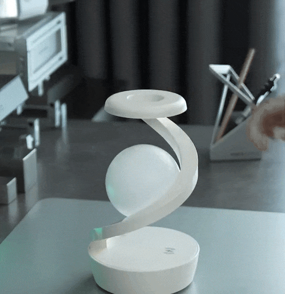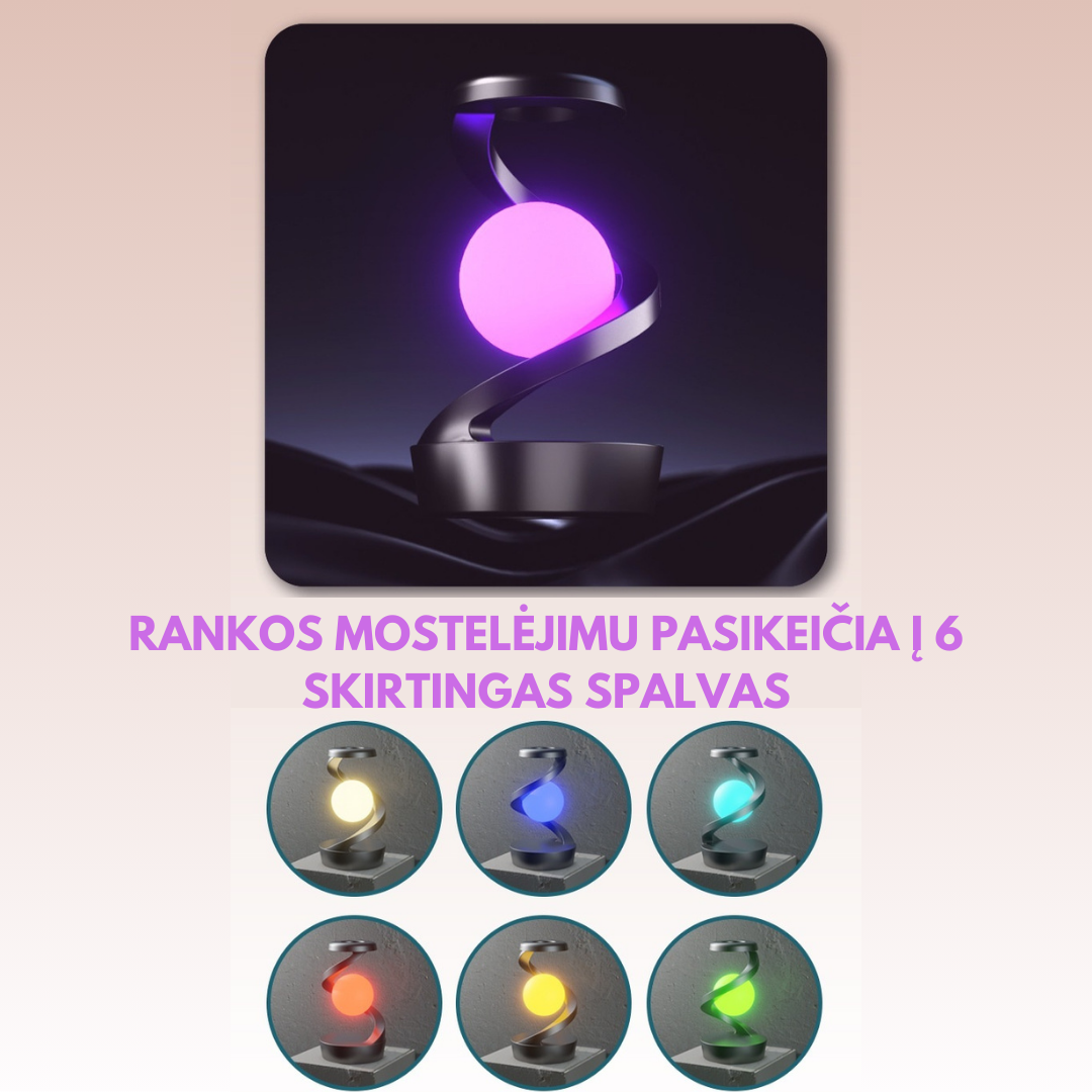 Levituojanti lempa su belaidžio telefono įkrovimo funkcija