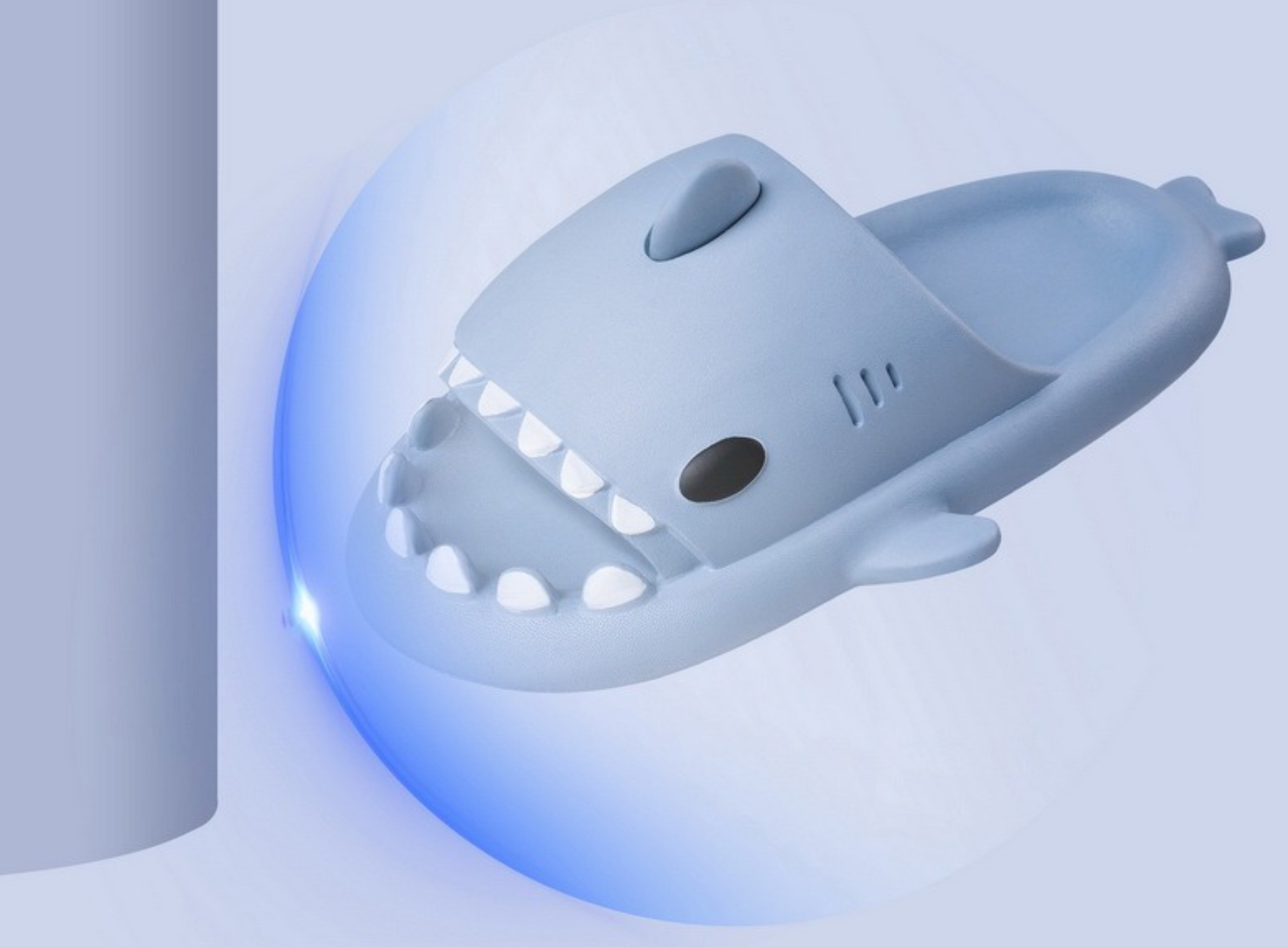 Šiek tiek užlenktas šlepečių priekis ir ryklio dantukai apsaugo Jūsų pirštus nuo galimo atsitrenkimo į kietą paviršių.