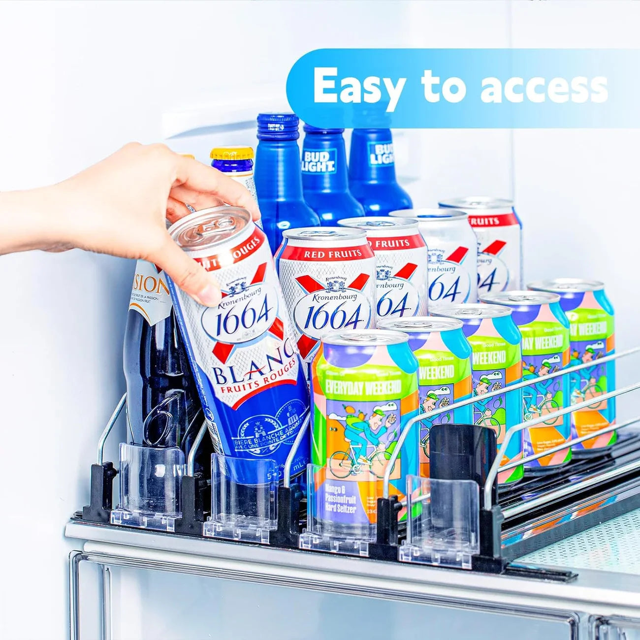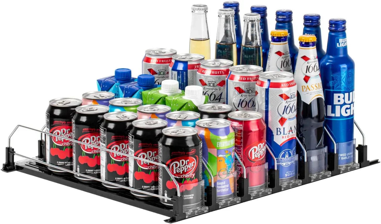 - Dėklas padės palaikyti tvarką ir patogiai išsimti reikiamą gėrimą iš šaldytuvo. Puikiai tinka susidėti skardinius, plastikinius bei stiklinius buteliukus. Ištraukus gėrimą dėklas automatiškai pastumia kitą gėrimą į priekį.