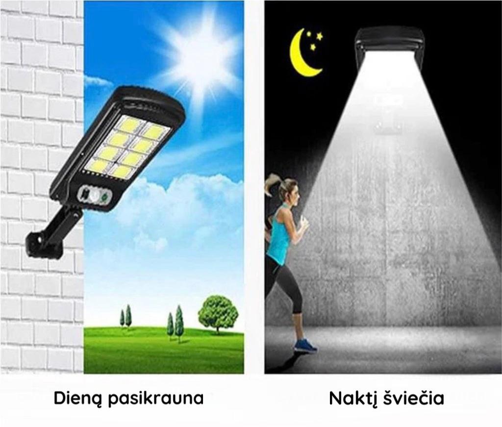 Šiose saulės energija maitinamose lauko apšvietimo sistemose įmontuoti itin galingi šviesos diodai. kurie tamsą apšviečia per kelias sekundes.