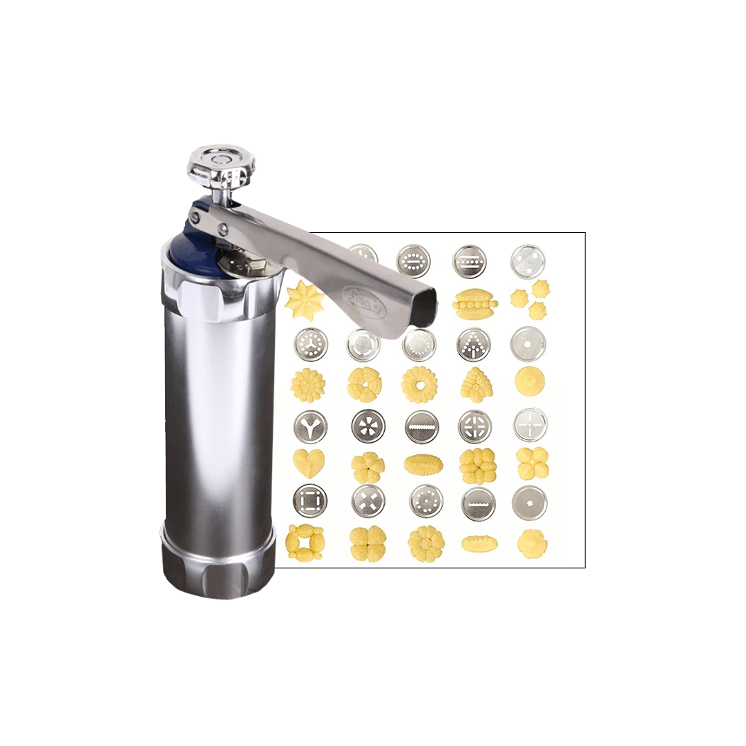 Tiesiog įdėkite tešlą į spaustuvą, pasirinkite norimą antgalį, pasukite rankeną ir iš spaustuvo išlįs tobulas sausainis!