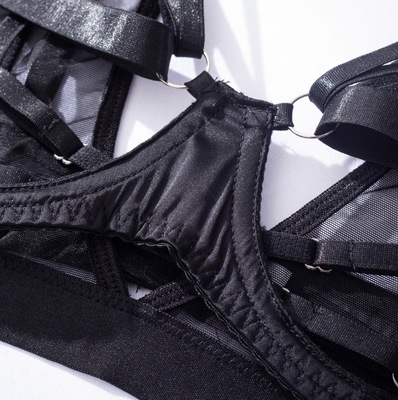 Įsigyję šį komplektą, gaukite išskirtinį rinkinį: liemenėlę, viršutinę dalį, apatinukus, sijoną ir kaklo juostelę.