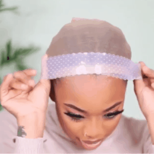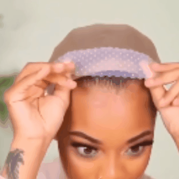 Peruko Uždėjimas: Užsidėkite peruką ant galvos, užtikrindami, kad jis gerai priglustų prie juostelės.