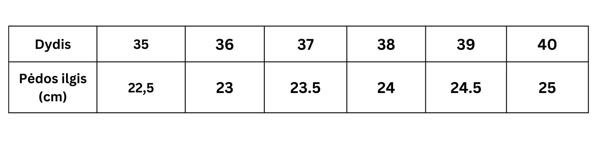 Dydžiai: nuo 35 iki 40