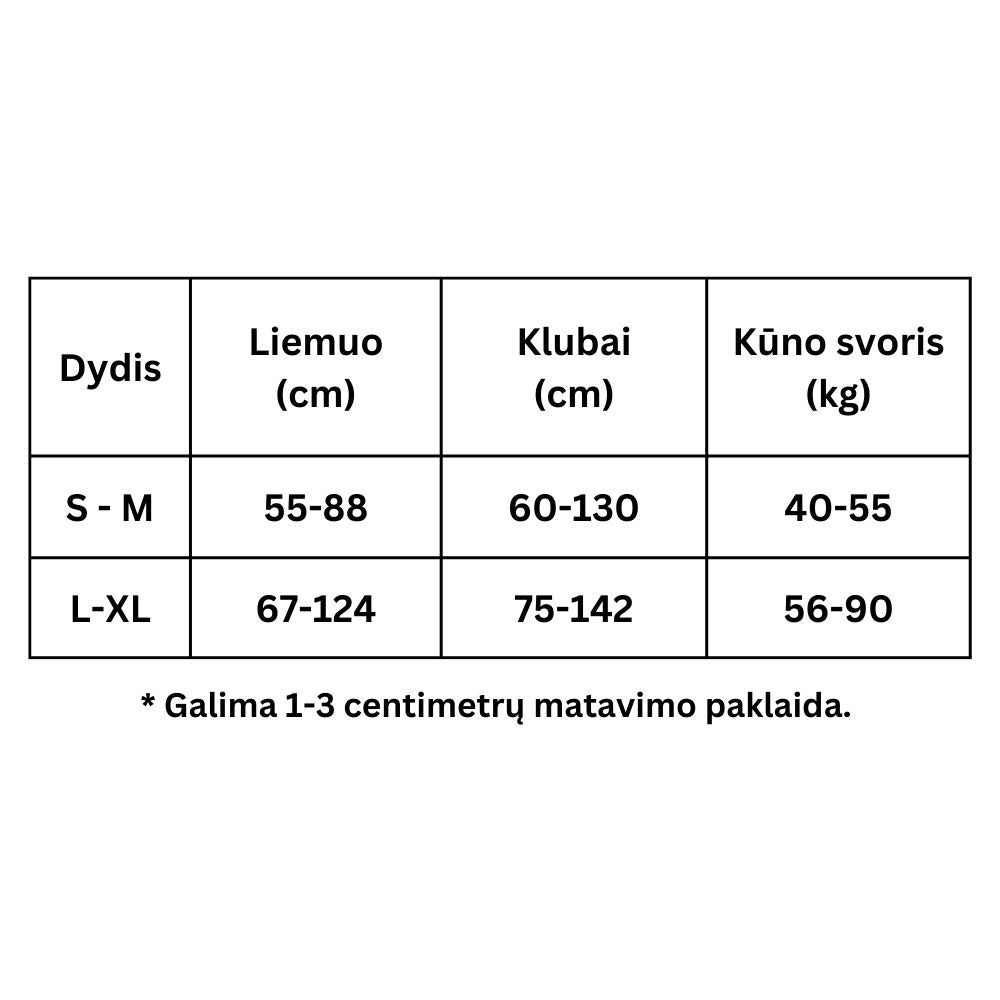 Rekomenduojamas kūno svoris L-XL dydžiui: 56-90 kg.
