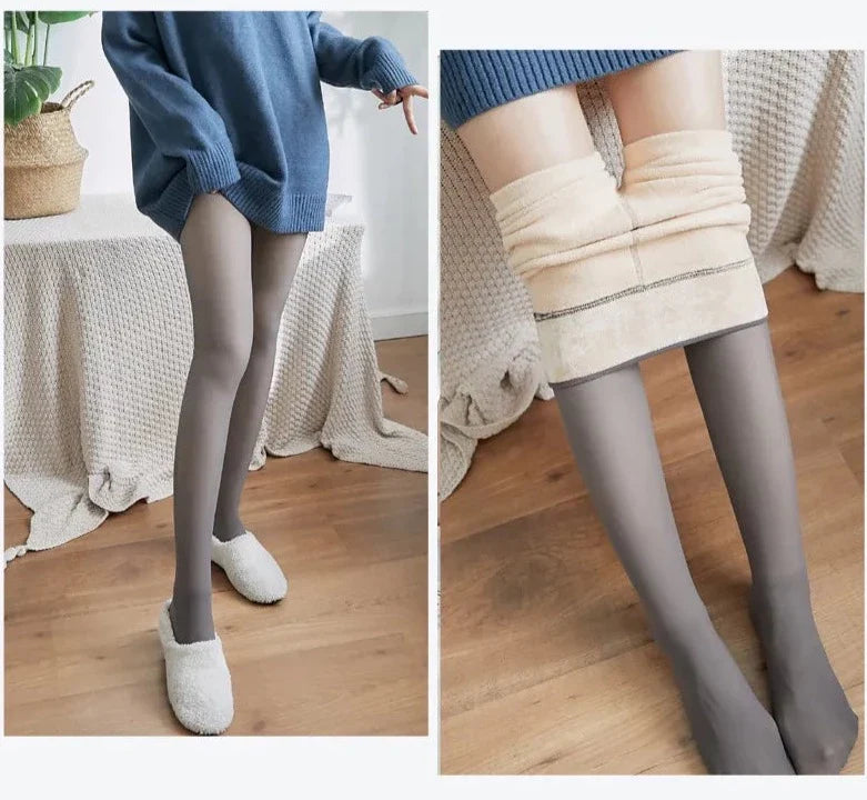 Pėdkelnės pagamintos iš specialaus pluošto, kuris iš išorės atrodo tarsi įprastas nailonas, o viduje turi pašiltintą sluoksnį. Apsimovusi šias pašiltintas pėdkelnes, atrodysite tarsi mūvėtumėte įprastas nailonines pėdkelnes, bet tuo pat metu jausite ypatingą komfortą ir šilumą dėl specialaus pliušinio pamušalo.