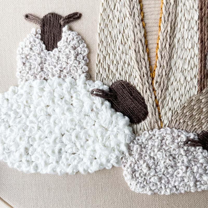 -  Medžiaga: medvilnės audinys, siuvinėjimo siūlai, medinis rėmas;