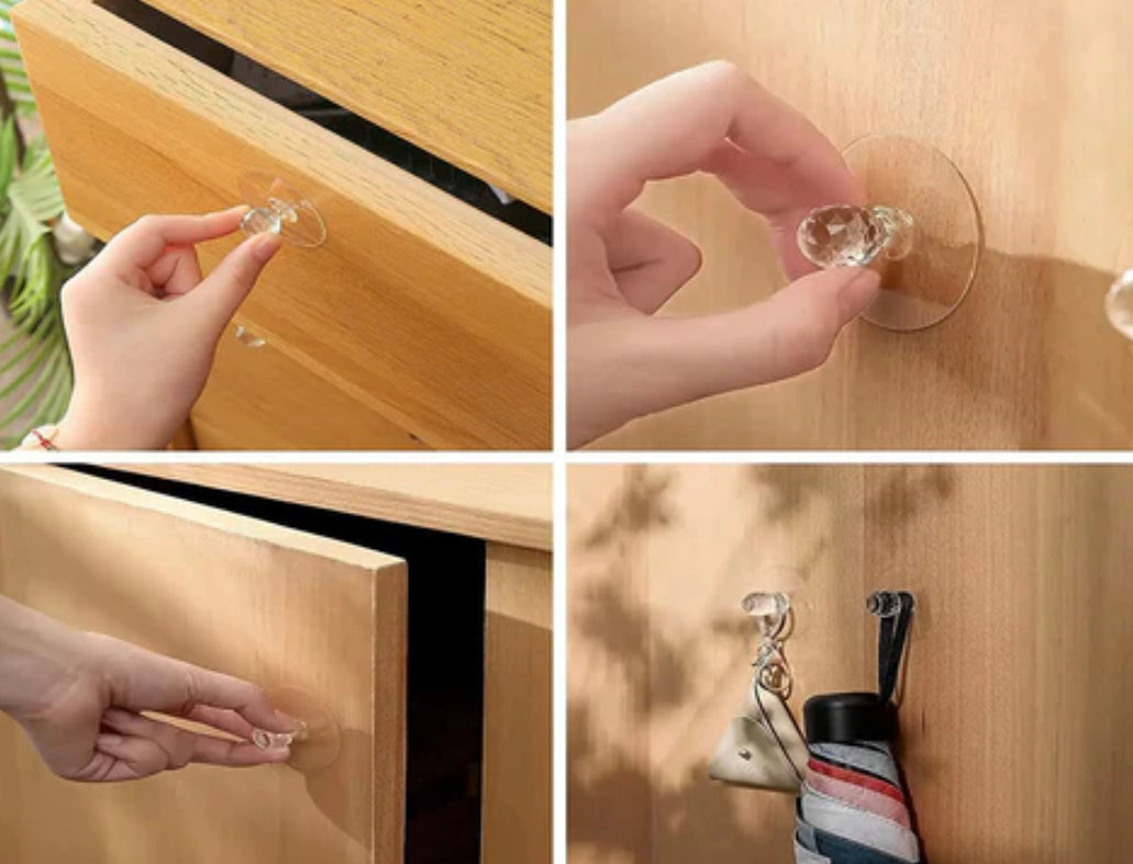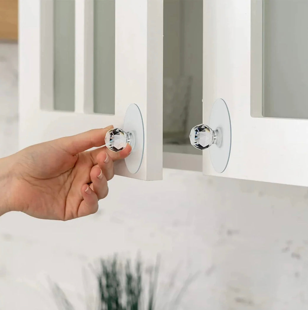 Paprastas įrengimas be gręžimo - priešingai nei tradicinės rankenos. kurias reikia gręžti. mūsų spintelės rankena turi labai paprastą įrengimo konstrukciją. Tiesiog nulupkite lipduką ir tvirtai priklijuokite prie bet kokio paviršiaus! Nelieka jokių žymių. skylių ar klijų!