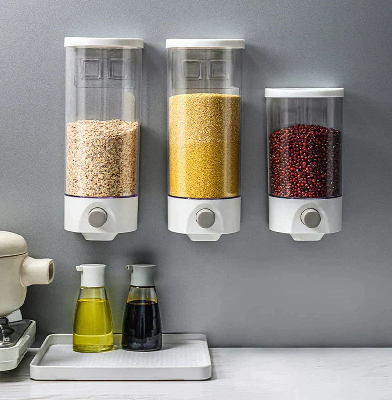 Mūsų sieninis modernus dozatorius yra drėgmei atsparus laikymo indas. skirtas išlaikyti jūsų maistą šviežią ir sausą. Skaidrus dizainas ne tik puikiai atrodo ant bet kurios sienos. bet ir vizualiai parodo. kas yra viduje.