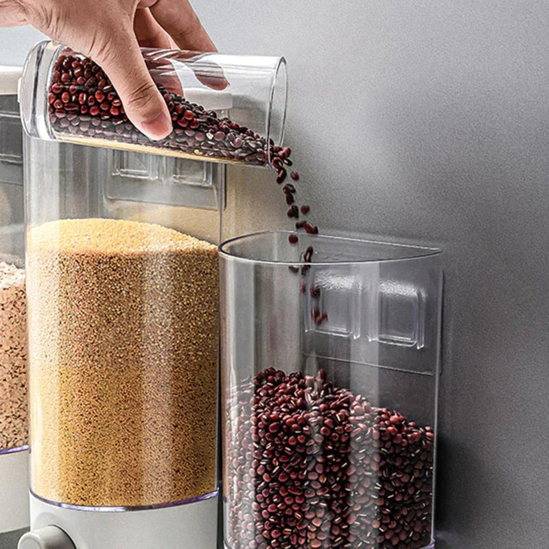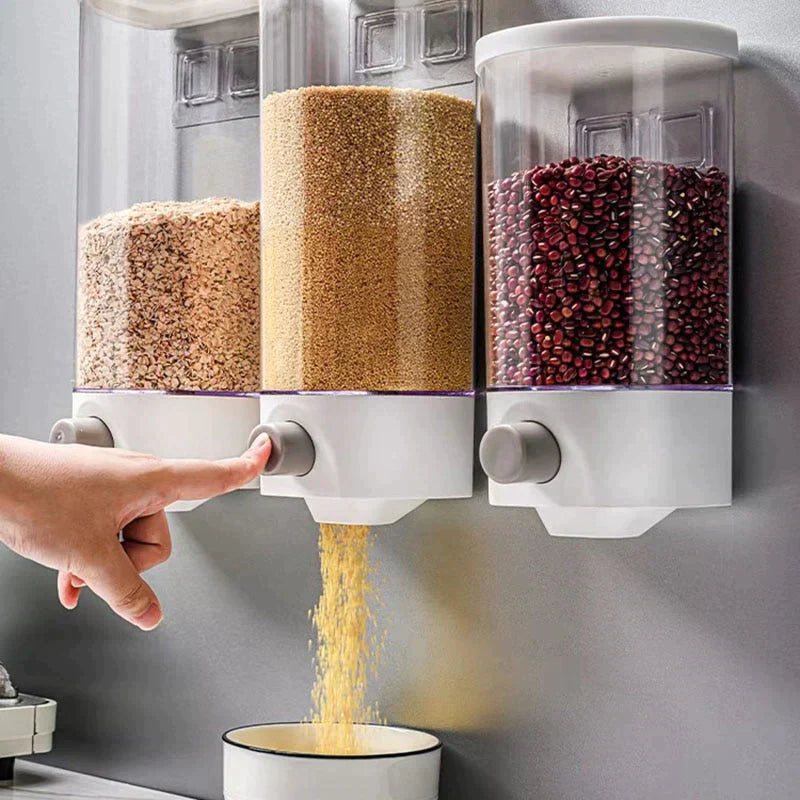 Skaidrus sieninis dozatorius yra puikus sprendimas laikyti užkandžius. kavos pupeles. džiovintus vaisius. dribsnius ir kt. Jis yra stabilus. stabilus ir pagerina jūsų virtuvės erdvės išvaizdą. Šis maisto laikymo indas yra būtinas bet kurioje elegantiško ir modernaus dizaino virtuvėje!