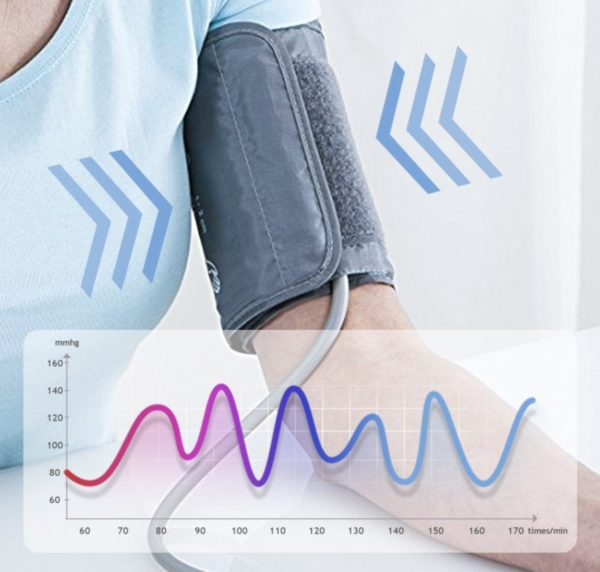 Dėl išmanaus pripučiamo manžetės dizaino, matavimo metu sumažinamas diskomfortas.