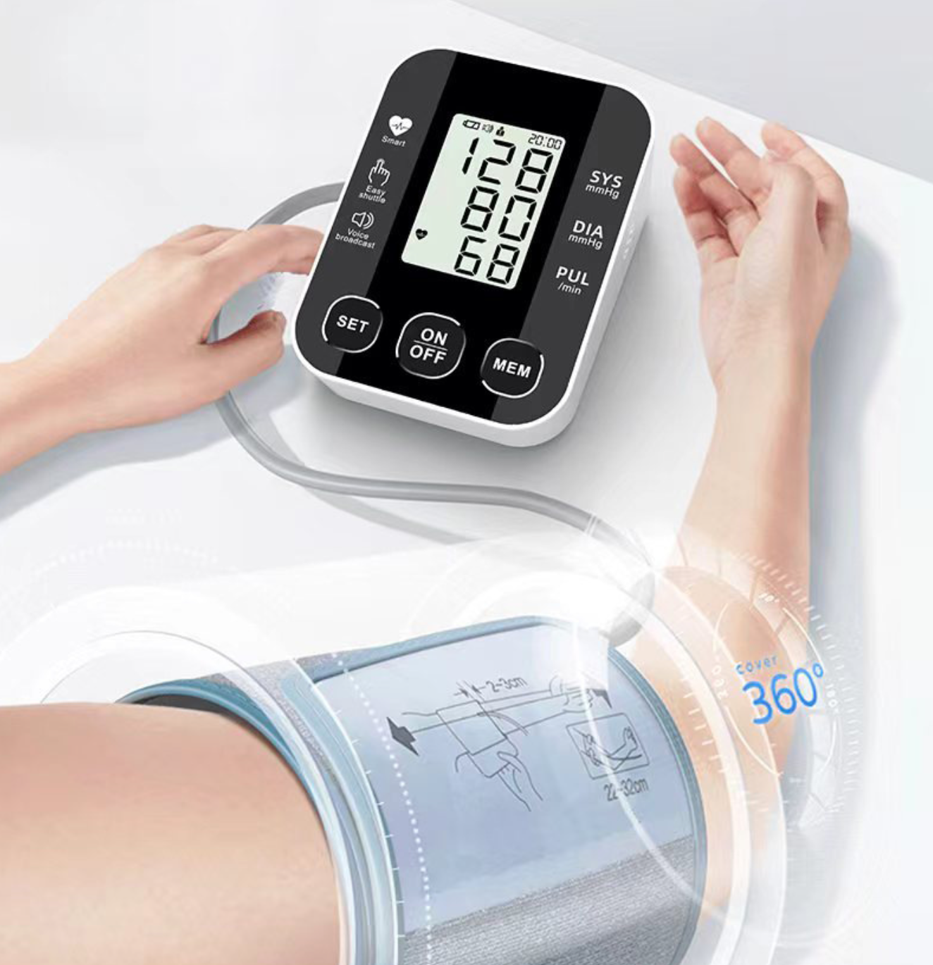 Produktas turi balso pranešimų funkciją, o ekrane rodomi itin dideli skaičiai, kurie padeda vyresnio amžiaus žmonėms suprasti matavimo rezultatus be jokių sunkumų.
