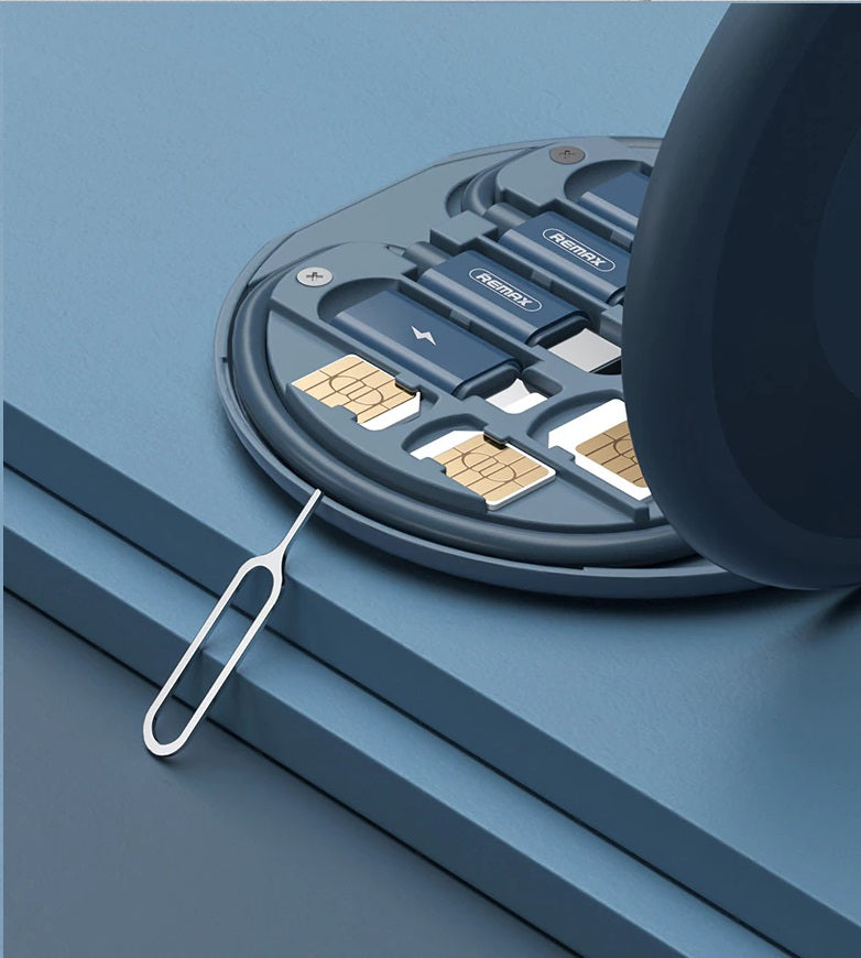 Tai praktiška dėžutė įvairių tipų sąsajoms, SIM kortelėms, duomenų kabeliams. Jame taip pat yra išėmimo įrankis ir 3 kortelių lizdai, kurie padės nepamesti SIM kortelės.