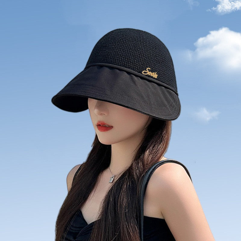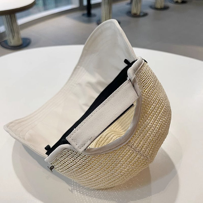 - Viršutinė skrybėlės dalis yra pinta. Skrybėlės gale yra dirželis, kuriuo lengva reguliuoti skrybėlės apimtį. Universalus dydis tiks visoms moterims!