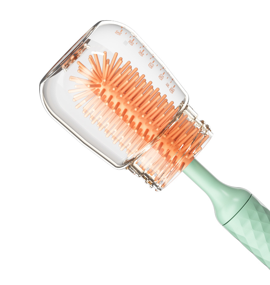 Elektrinis šepetelis leidžia greitai ir efektyviai išvalyti buteliuką per maždaug 1-2 minutes (paprastas rankinis užtrunka iki 5 min). Čiulptuką - per maždaug 30 sekundžių (paprastas rankinis užtrunka iki 1-2 min).