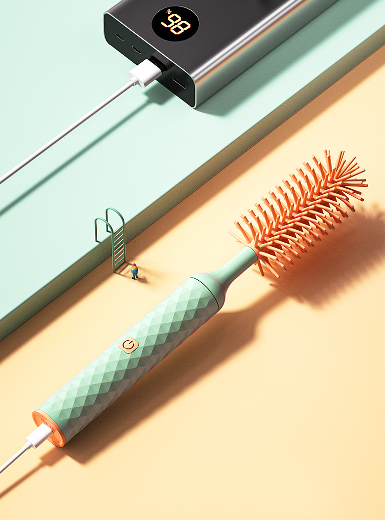 Komplekte yra elektrinis buteliukų šepetėlis, čiulptuko šepetėlis ir šiaudelio valymo šepetėlis - tinkamas visų rūšių buteliams valyti.