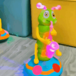 Žaidimas: Leiskite vaikui tyrinėti ir žaisti su žaislu. Vaikas gali stebėti, kaip žaislas juda, groja muziką, šviečia.