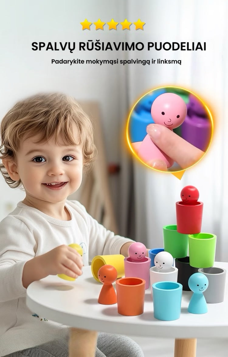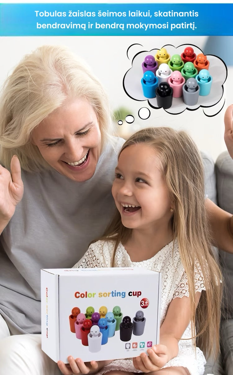 Pagerinkite vaiko mokymąsi ir koordinaciją su mūsų spalvotais rūšiavimo puodeliais - smagus, saugus ir lavinantis žaidimas mažiesiems!
